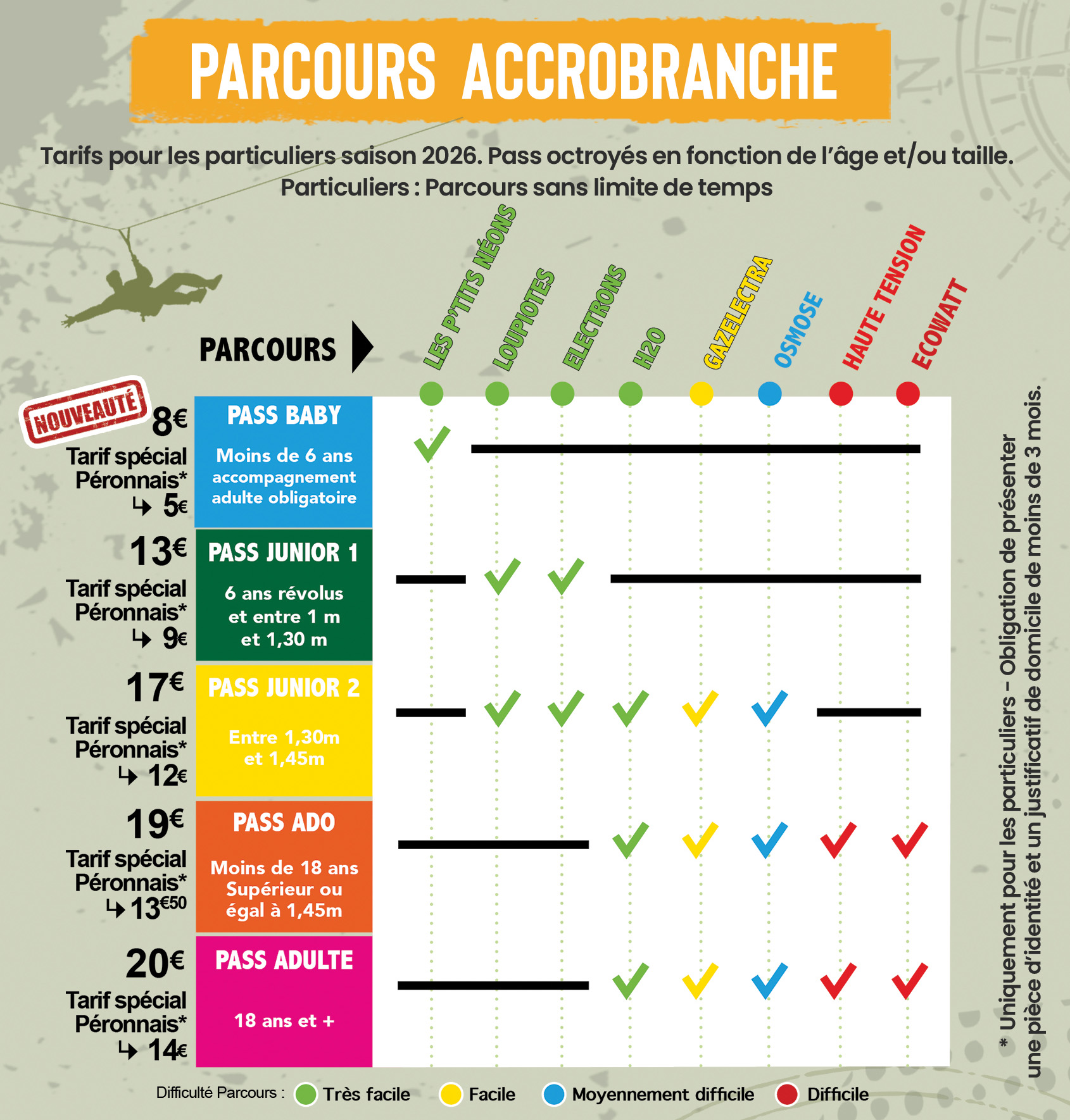 - Conditions d’accès aux parcours : voir page tarifs
